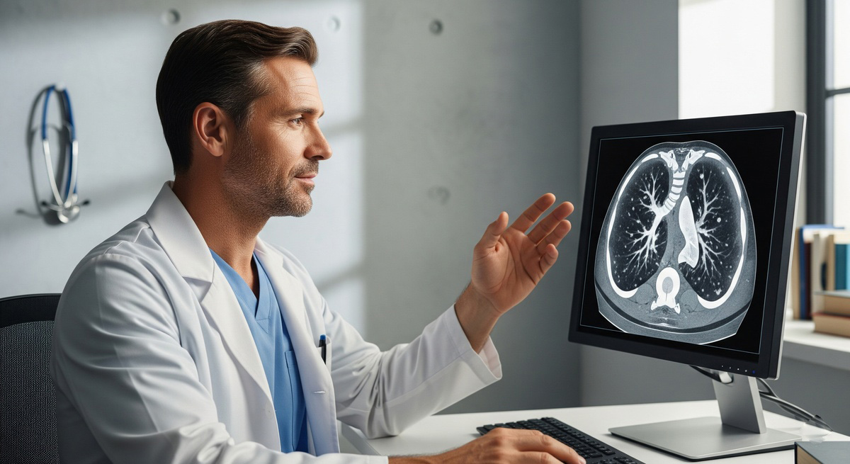 Компьютерная томография (КТ) легких — это современный метод послойного сканирования органов грудной клетки с использованием рентгеновского излучения. В отличие от стандартной рентгенографии, КТ создает высокодетализированные трехмерные изображения, что позволяет врачам обнаруживать мельчайшие патологические изменения, невидимые на обычном снимке.